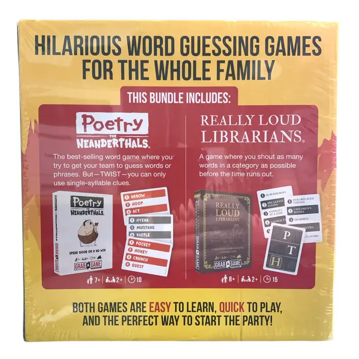 Grab & Game 2-Pack Party Games, Really Loud Librarians & Poetry for Neanderthals